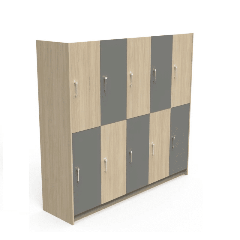 The Aus 2 Door Locker provides practical, shared-use storage with two vertically stacked compartments. Its Laminex finish and matching doors ensure a refined, professional look, while the Hafele Symo 3000 in-handle locks deliver dependable security as standard. Optional lock upgrades allow flexibility for different user requirements. Designed for durability and daily use, the Aus 2 Door Locker is well suited to offices, schools, and staff facilities.